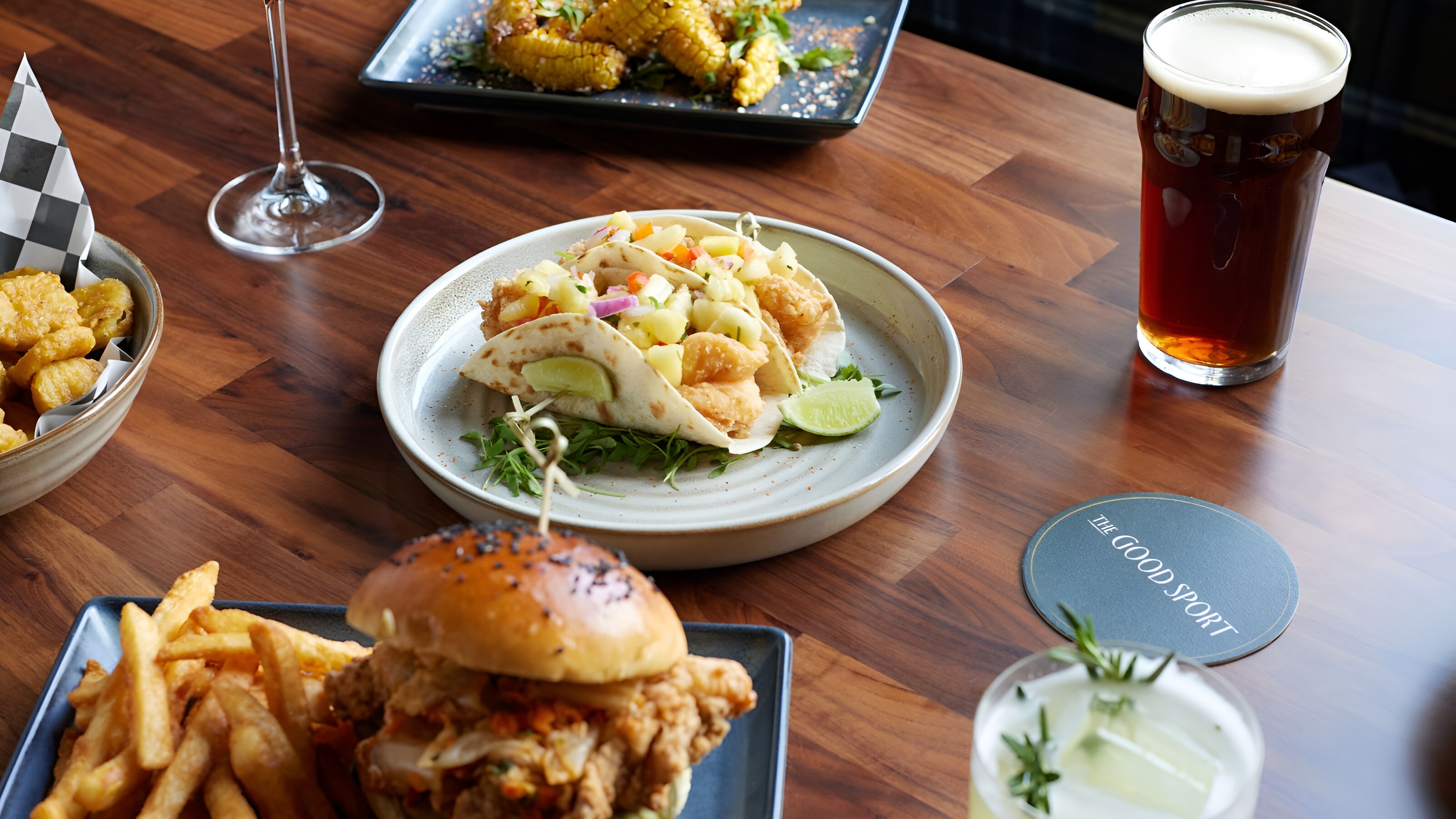 We proudly pour expertly-crafted cocktails, local beers and ciders alongside an enticing menu of elevated bar fare. Join us to watch the game, grab a quick bite, or enjoy a moment among friends - It’s all good here at The Good Sport.